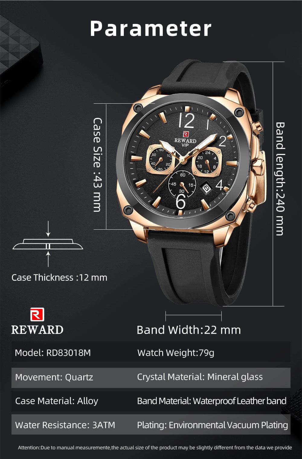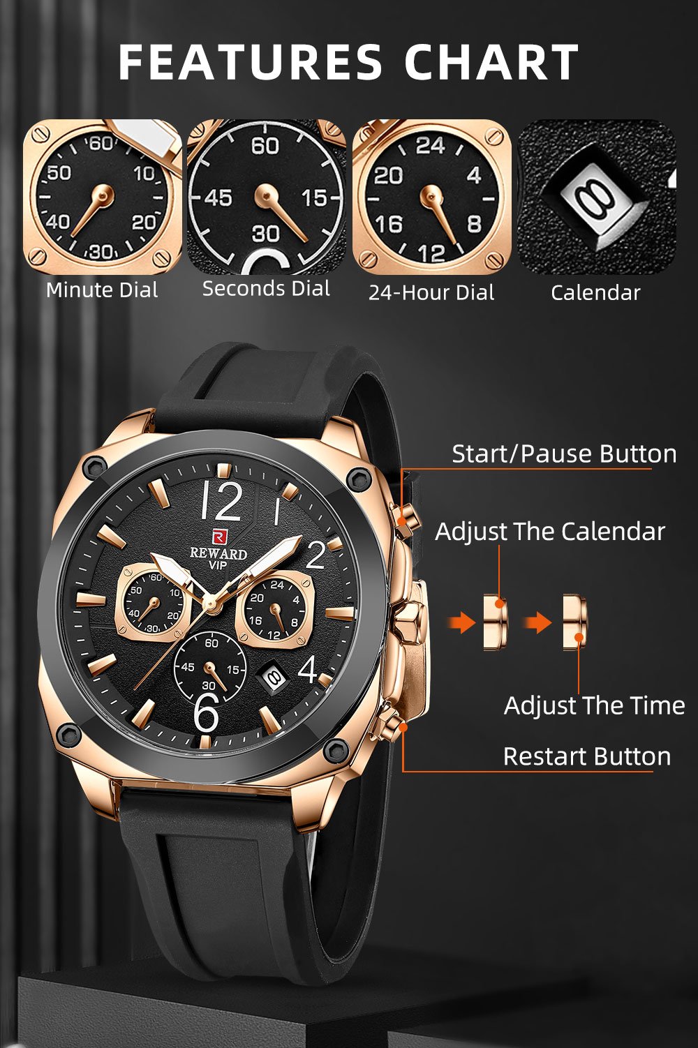 REWARD Montre-bracelet pour hommes nouvelle collection